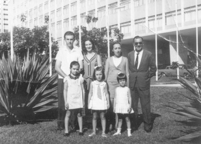 Foto do ano de 1968, da família de Carlos Alberto Ferreira, na cidade de Brasília. (1) e (2) o casal Carlos Ferreira e Romilda Leite Ferreira, (3) não identificada, (4) Epitácio Barbosa (in memoriam), que era chofer de táxi na capital federal, e um autêntico embaixador de Ituverava na cidade, (6) Rosana Leite Ferreira, é filha do casal, (5) e (7) as sobrinhas Ágda Angélica Vale Ferreira e Rita de Cássia Ferreira de Carlo
