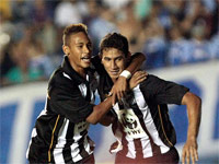 Neymar e Ganso comemoram o segundo gol: revelações santistas brilharam mais uma vez no Paulistão