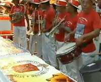 O bolo tem diversas estampas dos cartões postais da cidade, como o Maracanã e o Cristo Redentor. Uma banda de marchinhas animou os cariocas tocando músicas como “Cidade Maravilhosa”.