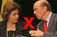 Pesquisa Datafolha divulgada neste sábado (27) mostra o pré-candidato do PSDB à presidência, o governador de São Paulo, José Serra, nove pontos à frente da pré-candidata do PT, a ministra Dilma Rousseff. Segundo o levantamento, realizado nos dias 25 e 26 de março, o tucano tem 36% das intenções de voto, enquanto a petista aparece com 27%. Há um mês, eles tinham 32% e 28%, respectivamente, no mesmo cenário.