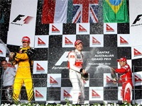 Jenson Button (ao centro), Kubica e Massa fazem a festa no pódio do GP da Austrália, neste domingo