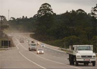 Primeiros veículos a utilizarem o Trecho Sul do Rodoanel Mario Covas, na manhã desta quinta-feira (1º). (Foto: Juliana Cardilli/G1)