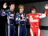 Webber (2º), Vettel (1º) e Alonso (3º): os três primeiros do grid na China. Alemão fez a terceira pole no ano
