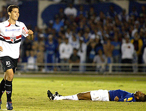 O nervosismo mandou no início de jogo. Por parte do Cruzeiro, muitas faltas, enquanto os são-paulinos exageravam nos passes errados. Os visitantes levaram o primeiro susto em cobrança de escanteio, aos nove minutos do primeiro tempo. Henrique subiu mais que Richarlyson e cabeceou forte para o gol. Rogério Ceni fez bela defesa, em cima da linha, mas a arbitragem interrompeu a partida porque Kleber, em posição irregular, participou do lance, atrapalhando a visão do goleiro e tentando desviar a bola.
