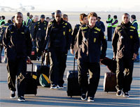 Os jogadores do Brasil na pista do aeroporto de Joanesburgo, na África do Sul (Foto: Reuters)Delegação brasileira é a segunda a desembarcar na África do Sul