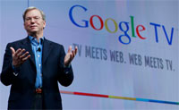 Eric Schmidt, presidente do Google, durante a apresentação do Google TV em evento nos Estados Unidos. (Foto: Paul Sakuma/AP)