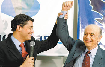 Indio da Costa com José Serra, na coletiva em que o deputado do DEM foi confirmado na chapa Deputado Indio da Costa, 39, foi definido na última hora e não era cotado
