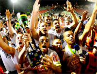 Jogadores comemoram o título com a taça da Copa do Brasil (Foto: Marcos Ribolli / Globoesporte.com)