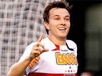 Clique e veja a tabela de jogos da competição Cinco gols em 20 minutos Com três minutos, o Peixe abriu o marcador. Neymar, em bela jogada pela esquerda, lançou Zé Eduardo. O atacante invadiu a área e bateu cruzado. Rogério Ceni falhou e rebateu para o meio, nos pés de Alan Patrick, que só empurrou para a rede. A resposta tricolor foi imediata. Três minutos depois, após cobrança de escanteio pela esquerda, a bola sobrou na direita para Miranda, que fintou Danilo e cruzou para Ricardo Oliveira, que, de cabeça, ajeitou para Dagoberto empatar. O jogo era alucinante. O São Paulo, quando tinha a bola, movimentava suas quatro peças ofensivas e levava a defesa do Peixe ao desespero. Só que os homens de frente não voltavam para compor a marcação como Carpegiani pedia. Com isso, havia um buraco entre os dois volantes (Rodrigo Souto e Carlinhos Paraíba) e o ataque. Nesse espaço, o meio-campo santista chegava fácil até a entrada da área tricolor. Os torcedores mal tinham tempo para respirar, tamanha a volúpia das equipes. Aos 13 minutos, Zé Eduardo cabeceou no ângulo esquerdo de Rogério Ceni, que voou e mandou para escanteio. No ataque seguinte, o São Paulo desempatou. Fernandinho foi lançado por Richarlyson pela esquerda, avançou, tocou para Ricardo Oliveira, recebeu na frente, foi ao fundo e devolveu para o camisa 99, que, de pé esquerdo, cruzou na medida para Dagoberto balançar novamente a rede. O Peixe ainda se recuperava do segundo golpe quando levou o terceiro, aos 19. Dagoberto foi lançado pela esquerda, cortou a marcação, invadiu a área, e Pará, na tentativa de desarmar o camisa 25, chutou para o próprio gol. Delírio no Morumbi, e 3 a 1 no marcador. Santos reage e encurrala o Tricolor O tempo passava e a velocidade não diminuía. O Santos, mais equilibrado em campo, cresceu e foi com tudo em busca do empate. O desequilíbrio no meio-campo são-paulino permanecia, e os homens de frente do Peixe tinham o apoio constante de Arouca e Danilo. Aos 31, Durval cobrou falta da entrada da área, e Rogério Ceni fez um milagre para evitar o gol. O São Paulo perdeu a velocidade que tinha no contra-ataque. O gol do Peixe parecia iminente. Neymar infernizava a vida de Jean pela direita, e Rodrigo Souto e Carlinhos Paraíba lutavam com três ou quatro adversários que chegavam pelo meio. Alex Silva e Miranda, em alguns lances, ficaram no mano a mano, mas conseguiram evitar o pior. Aos 45, o empate santista só não aconteceu porque Rogério Ceni, em mais uma grande defesa, evitou gol de Durval, após cruzamento da direita. Carpegiani muda esquema e Tricolor fica com homem a menos Mas Richarlyson, aos 13, estragou tudo o que o treinador havia planejado ao acertar Zé Eduardo na lateral e ser expulso. Imediatamente, Marcelo Martelotte sacou o volante Roberto Brum e colocou o meia Felipe Anderson para dar mais força ofensiva ao seu time. E o Peixe rapidamente encurralou o São Paulo em seu campo. Fernandinho foi recuado para a lateral esquerda. Para dar mais força no apoio por esse setor, Maranhão entrou na vaga de Pará. Carpegiani respondeu com a entrada do lateral-esquerdo Diogo na vaga de Fernandinho. Com um homem a mais, o Peixe chegou ao empate aos 26, em pênalti discutível de Alex Silva em cima de Neymar. Na cobrança, o atacante colocou no ângulo esquerdo de Rogério Ceni. O São Paulo respondeu logo depois, em lance em que Jean, sozinho na área e cara a cara com Rafael, chutou por cima do gol, perdendo um gol inacreditável. Como o São Paulo precisava da vitória, Carpegiani tentou sua última cartada com a entrada de Marlos no lugar de Dagoberto. E o time teve uma nova chance para matar a partida. Aos 37, Jean perdeu outra chance. Sozinho diante de Rafael novamente, ele bateu no canto esquerdo do goleiro santista, que desviou com a mão direita e viu a bola bater na sua trave esquerda antes de a zaga do Peixe afastar. A emoção seguiu até o fim. O Peixe teve uma chance de ouro com Danilo, que recebeu na área e bateu no ângulo de Rogério Ceni. O goleiro voou e mandou para escanteio. No último lance da partida, Marlos desceu pela direita e cruzou na medida para Ricardo Oliveira, que testou firme, no canto esquerdo de Rafael, que espalmou. Na sobra, Jean desta vez não bobeou e empurrou para a rede para garantir a incrível vitória do São Paulo.