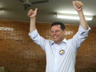 O novo governador de Goiás, Marconi Perillo, do PSDB, vota em sua cidade natal, Palmeiras de Goiás