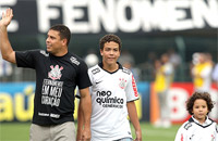 No adeus de Ronaldo, homenageado no gramado e ovacionado pela torcida, o Corinthians revelou um novo artilheiro, agora na lateral esquerda. Fábio Santos, tão criticado pela má exibição na eliminação na Taça Libertadores diante do Tolima-COL, redimiu-se parcialmente ao marcar dois gols na vitória por 3 a 1 no clássico contra o Santos, neste domingo. Liedson, sempre impiedoso no Pacaembu, e Elano fizeram outros dois golaços. Curiosamente, o resultado também parece apontar que o time do Parque São Jorge não sentirá tanta falta de seus "galácticos", já que os gols foram assinalados exatamente por seus substitutos. O Timão é o único invicto do Campeonato Paulista, mas permanece na terceira posição, pois o Mirassol derrotou o Linense por 2 a 0.