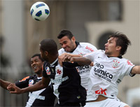 Vascaínos Renato Silva e Dedé disputam bola com corintianos Castán e Paulo André (Foto: Agência Estado)