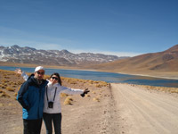 A ituveravense Júlia e o marido Jorge Perren, no deserto da Patagônia, no Chile; ao fundo, a cordilheira dos AndesJúlia Campos – que se prepara para ser mãe pela primeira vez – enumera as vantagens de se viver em um país admirável