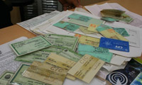 Documentos apreendidos que eram usados em fraudes