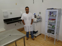 O médico veterinário do Hospital-Escola mantido pela Faculdade Dr. Francisco Maeda (Fafram), Edmilson Rodrigo Daneze; no destaque, com animal do canilClima quente pode causar doenças e trazer muito sofrimento ao animal