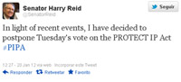 O Senado norte-americano anunciou o adiamento da votação do Pipa, que estava prevista para a próxima terça-feira (24), "por causa dos eventos recentes”, anunciou o senador Harry Reid.