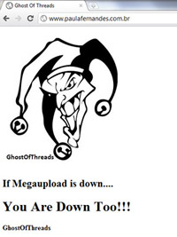 O site da cantora brasileira Paula Fernandes também estava fora do ar na manhã deste sábado. Na página inicial, havia um desenho de um coringa e a mensagem: "If Megaupload is down.... You Are Down Too!!!" ("Se o Megaupload foi derrubado, você também foi", em tradução livre do inglês).