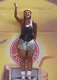 Após aguentar 4h15m em uma colher gigante, Fabiana é a nova líder do "BBB12". A garota-propaganda disputava a prova de resistência, que valia a liderança com o integrante do quarto Praia, Jonas. Depois de conversarem muito sobre quem deveria vencer, o modelo simplesmente desistiu.