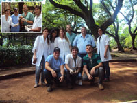 Equipe que colocou microchips nos animais do Zoológico de Guaíra; no destaque, o microchip sendo colocado em um macaco