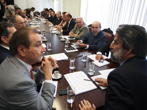 Raupp, à direita, preside reunião com representantes de 18 partidos que querem derrubar decisão sobre contas rejeitadas