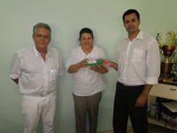 O pediatra Antônio Sérgio Cardoso Telles; a administradora da Santa Casa, Cláudia Maria Carrera Frata, recebendo o aparelho das mãos do oftalmologista, Gleilton Mendonça Aparelho é utilizado para fazer o teste do reflexo vermelho e detectar se bebês nascidos têm problemas graves de visão