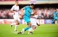 No clássico da fase de classificação, Rodrigo Caio havia tomado cartão amarelo no primeiro tempo, não saiu, e foi expulso no segundo. Emerson Leão aprendeu a lição. Dessa vez, tirou o amarelado Piris e colocou justamente Rodrigo Caio para marcar Neymar. A outra substituição foi tradicional: Fernandinho no lugar de Jadson.
