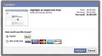 O Facebook lançou para alguns usuários um sistema em que é possível pagar US$ 2 para fazer com que algumas publicações tenham mais destaque na rede social, segundo o jornal "Daily Mail". O recurso, chamado de "Highlight", garantiria que o post será visto por mais pessoas dentro do site.