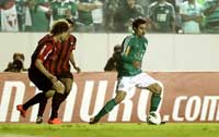 Era natural que o Atlético atacasse mais, mas Juan Ramón Carrasco fez questão de se precaver. Por isso, quatro meio-campistas, três mais de marcação, e apenas dois homens na frente – Guerrón e Bruno Mineiro. No jogo de ida, Carrasco colocou três atacantes, deixou muitos buracos na defesa e levou dois gols. Nesta quarta, o time criou poucas chances no início, mas atacou com segurança. Bruno Mineiro teve até a chance de abrir o placar, em um dos vários passes em profundidade de Liguera, mas se enrolou na hora de finalizar.