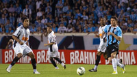 Mas o Grêmio pouco evoluiu a partir de então. E o Atlético-MG seguiu assustando. Ronaldinho cobrou falta com veneno, mas Marcelo Grohe conseguiu evitar o 2 a 0. Aos 22, num contragolpe puxado pelo camisa 49, Jô ficou cara a cara com Grohe. O goleiro novamente defendeu, agora com os pés, e teve seu nome entoado nas arquibancadas.