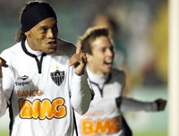 Ronaldinho comemora o seu gol na vitória sobre o Figueirense (Foto: Cristiano Andujar / Agência Estado)