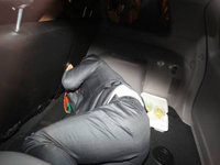 Cachoeira tenta se esconder de fotógrafos no carro, depois do interrogatório na 11ª Vara Federal de Goiás: depoimento do bicheiro será nesta quarta-feira