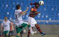 O Flamengo começou animado e chegou a dar a impressão de que tinha condição de mandar no jogo. Logo aos 6, Adryan disparou pela direita e cruzou para Vagner Love na área. A cabeçada, entretanto, saiu nas mãos de Dida.