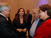 Dilma Rousseff conversa com os presidentes do Chile, Sebastián Piñera, da Argentina, Cristina Kirchner, e do Uruguai, José Mujica, na cúpula do Mercosul e Estados Associados em Mendonza, em junho