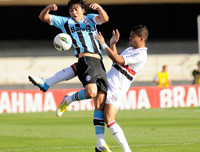 Assim, Elano, na maioria das vezes, era a principal válvula de escape dos visitantes. Tanto que os chutes do ex-santista e algumas tentativas aparecendo como elemento surpresa na área foram as principais jogadas do Grêmio nos primeiros 45 minutos de clássico no Morumbi. Kleber, a principal referência, esteve apagado.