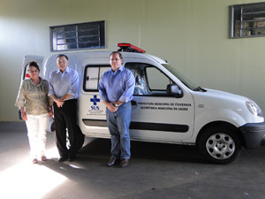 Gláucia Anunciação (representante do Diretório do PT), prefeito Mário Matsubara, secretário de saúde Sérgio Renato ChicoteAmbulância foi adquirida com recursos intermediados pelo deputado Arlindo Chinaglia