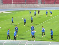 O Santos fez seu último treinamento antes da final da Recopa Sul-Americana, contra a Universidad de Chile, às 22h desta quarta-feira. O elenco fez uma atividade de reconhecimento ao gramado do Estádio Nacional, aparentemente em boas condições, sob o visual das Cordilheiras dos Andes, com pôr de sol que fechava um cenário brilhante.