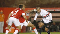 O Colorado não tardou a mostrar o cartão de visitas. Rogério Ceni já havia avisado que a bola aérea do adversário era perigosa. Mas o alerta de nada serviu. Em seu terceiro cruzamento, aos sete minutos, Fabrício encontrou Dagoberto livre na grande área, e o atacante não perdoou a falha da marcação tricolor - com um petardo de primeira, acertou o ângulo direito de Ceni e não comemorou. Dagol voltava ao Morumbi depois de cinco temporadas à frente do São Paulo. Foi vaiado ao ter seu nome anunciado no estádio. Deu a resposta com o gol, mas não tripudiou. Apenas levantou os braços e esperou o abraço dos colegas de time.