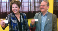 A presidente Dilma Rousseff votou em Porto Alegre na manhã deste domingo (7). Ela chegou à Escola Estadual Santos Dumont, na Vila Assunção, Zona Sul da capital gaúcha, às 9h20, acompanhada do governador Tarso Genro. Em poucos segundos, confirmou sua escolha para prefeito e vereador nas eleições municipais de 2012. Antes, cumprimentou os mesários e eleitores que estavam na seção. Depois do voto, posou para fotos ao lado de Tarso.
