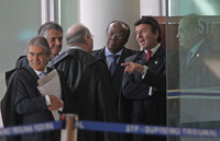 Ministros do Supremo conversam do lado de fora do plenário, antes do início de sessão do julgamento do mensalão (Foto: André Coelho / Agência O Globo)