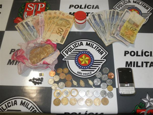 Drogas, dinheiro, celular e cartão de memória apreendidos pela PM