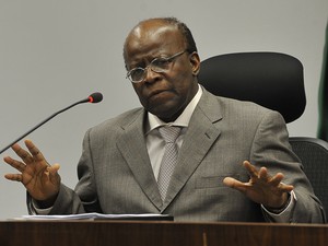 O ministro Joaquim Barbosa durante entrevista coletiva no Supremo Tribunal Federal