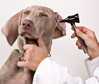 Cão sendo examinado: infecção de ouvidoAlgumas raças apresentam predisposição para contrair a doença; mas ela pode ocorrer em qualquer animal