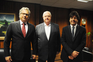 O prefeito Walter Gama Terra Júnior e o secretário Ronaldo Spirlandelli de Oliveira, sendo recebidos pelo deputado Barros MunhozEmpreitada tem o apoio do deputado estadual Barros Munhoz