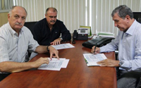 Felipão, o auxiliar Murtosa e o coordenador Parreira fecham a lista na sede da CBF