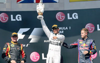 Com uma atuação impecável, o campeão mundial de 2008 conseguiu administrar o desgaste dos pneus na quente tarde de Budapeste (35º C) para, enfim, “ir às alturas” com sua primeira vitória na Mercedes, após seis anos na McLaren. Confira os melhores momentos da prova no vídeo. A TV Globo exibe a corrida na íntegra nesta noite, logo após a série “Revenge”.