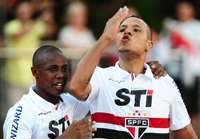 Luis Fabiano celebra o primeiro gol do São Paulo na partida