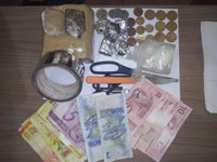 Drogas, objetos e dinheiro apreendidos pela Polícia Militar Foram encontrados drogas, objetos e dinheiro apreendidos pela Polícia Militar