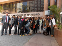 Alunos do curso de Direito da Fafram durante visita ao TRT de Campinas Eles tiveram a oportunidade de assistir a uma sessão presidida pela desembargadora Susana Graciela Santiso