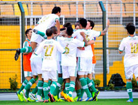 Jogadores do Palmeiras comemoram o primeiro gol (Foto: Marcos Ribolli)