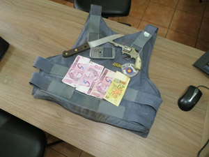 Dinheiro e objetos apreendidos pela PM com os envolvidos no crime